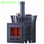 Под каменкой на 3-х упорах установлен рассекатель пламени, он разделяет пламя на 3 потока и направляет сначала на боковые части корпуса для интенсивного нагрева стенок и конвекционного нагрева воздуха в парной. Для этого на наружных поверхностях расположены конвекционные рёбра. Дальше пламя проходит через выступы к выходу в дымоход, нагревая каменку.
