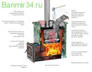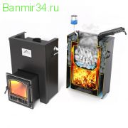 Ключевым элементом печи для бани Эверест INOX 20 (205) под обкладку (AISI 430) является закрытая каменка, размещённая над топочным пространством. Толстые стенки каменки выполняют функцию зуба-отбойника. Пламя и нагретые газы обтекают каменку с пяти сторон, позволяя быстро нагревать закладываемые вовнутрь камни до температуры 550-600 градусов. Вода из верхней ёмкости по трубкам поступает в нижнюю часть каменки и через точечные отверстия равномерно попадает на камни. Система позволяет получать мелкодисперсный пар без чрезмерного остывания камней. Для выхода пара в верхней части каменки оборудована дверка. Система регулирования воздушного потока чугунной дверки помогает чётко дозировать количество пара, выходящего из каменки.