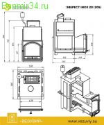 Печи Эверест INOX 20 подходят для парных объёмом от 18 до 28 кубометров. Печи INOX изготовлены из нержавеющей стали марки AISI 430, толщиной от 4 до 6 мм. Более толстая сталь идёт на изготовление закрытой каменки, а топочная часть печи сделана из стали толщиной 4 мм. Из такой же стали сделан топочный тоннель всех трёх моделей.