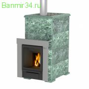Печь в облицовке эффектным змеевиком станет яркой фокусной точкой в вашей парилке.