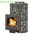 Банная чугунная печь Ураган Ковка 16 (205) укомплектована чугунной герметичной дверцей Везувий 205 с жаропрочным стеклом «Schott Robax». Закрытая каменка изготовлена из стали и вмещает в себя не менее 60кг камней. Конвекционно-вентилируемый кожух "Ковка" изготовлен из металлической текстурированной полосы покрашенной термостойкой краской и покрытая патиной «Бронза». В конструкции данной печи предусмотрен топочный тоннель, при помощи которого печь топится из соседнего помещения, смежного с парильным.