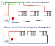 Наличие в чугунном теплообменнике 4-х патрубков с внутренней резьбой позволяет создавать различные варианты системы отопления. Неиспользуемые патрубки глушатся заглушками. Система отопления монтируется по общим типовым схемам с расширительным бачком устанавливаемым в верхней точке.