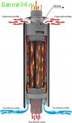 Обеспечивает конвекцию воздуха в помещении, тем самым помогает прогреву парной. Встроенные каналы распределяют потоки воздуха, забирая холодный воздух в нижней части дымохода, нагревая его и отдавая в верхней части с помощью регулятора.