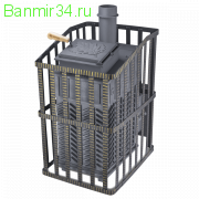 GFS-ЗК в сетке 18 Ураган - расширенный комплект печи GFS-ЗК в сетке. Максимально приближенный вариант печи для режимов русской парной, имеющий непосредственно закрытую чугунным коробом каменку, дверцу для пара с ручкой из бука, увеличенную до 50 см чугунную стартовую трубу. Печь легко модернизируется до полноценной печи предназначенной для Русской бани путем замены стальной сетки на каменную облицовку без демонтажа дымохода.