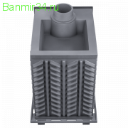 GFS-ЗК 18 (М) - печь с усиленной каменкой большей массы, с единым углублением внутрь топки для дополнительной укладки чугунного заряда. Теплосъемные шипы, со стороны горения пламени, в разы увеличивают площадь соприкосновения огня с каменкой и ускоряют передачу тепла, а также способствуют лучшему дожигу смешивая потоки пламени и воздуха поступаемого из воздушника. Эти усовершенствования значительно повышают мощность парообразования печи и выдают большее количество пара при непрерывной подаче воды. Каменка печей GFS-ЗК является незаливаемой.
