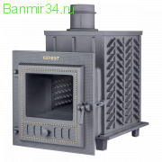 GFS-ЗК - печь с усиленной каменкой большей массы, с единым углублением внутрь топки для дополнительной укладки чугунного заряда. Теплосъемные шипы, со стороны горения пламени, в разы увеличивают площадь соприкосновения огня с каменкой и ускоряют передачу тепла, а также способствуют лучшему дожигу смешивая потоки пламени и воздуха поступаемого из воздушника. Эти усовершенствования значительно повышают мощность парообразования печи и выдают большее количество пара при непрерывной подаче воды. Каменка печей GFS-ЗК является незаливаемой.