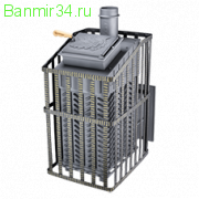Гефест ЗК 45(П) Ураган - расширенный комплект печи Гефест ЗК в сетке. Максимально приближенный вариант печи для режимов русской парной, имеющий непосредственно закрытую чугунным коробом каменку, дверцу для пара с ручкой из бука, увеличенную до 50см чугунную стартовую трубу. Печь легко модернизируется до полноценной печи предназначенной для Русской бани путем замены стальной сетки на каменную облицовку без демонтажа дымохода.