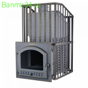 GFS-ЗК 45(П) Ураган - расширенный комплект печи GFS-ЗК в сетке. Максимально приближенный вариант печи для режимов русской парной, имеющий непосредственно закрытую чугунным коробом каменку, дверцу для пара с ручкой из бука, увеличенную до 50см чугунную стартовую трубу. Печь легко модернизируется до полноценной печи предназначенной для Русской бани путем замены стальной сетки на каменную облицовку без демонтажа дымохода.
