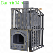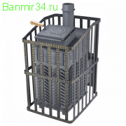 Гефест ЗК в сетке 18(П) Ураган - расширенный комплект печи Гефест ЗК в сетке. Максимально приближенный вариант печи для режимов русской парной, имеющий непосредственно закрытую чугунным коробом каменку, дверцу для пара с ручкой из бука, увеличенную до 50 см чугунную стартовую трубу. Печь легко модернизируется до полноценной печи предназначенной для Русской бани путем замены стальной сетки на каменную облицовку без демонтажа дымохода.