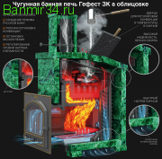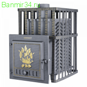 Гефест ЗК в сетке 30 - печь с усиленной каменкой большей массы, с единым углублением внутрь топки для дополнительной укладки чугунного заряда. Теплосъемные шипы, со стороны горения пламени, в разы увеличивают площадь соприкосновения огня с каменкой и ускоряют передачу тепла, а также способствуют лучшему дожигу смешивая потоки пламени и воздуха поступаемого из воздушника. Эти усовершенствования значительно повышают мощность парообразования печи и выдают большее количество пара при непрерывной подаче воды. Каменка печей Гефест-ЗК является незаливаемой.