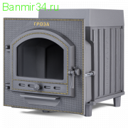 Чугунные банные печи ТМ «Гроза» — это современные печи, рассчитанные на малые и средние размеры парных. Печь имеет прочную сборную конструкцию, без резьбовых и сварных соединений, детали выполнены из легированного чугуна. Топка печей «Гроза» состоит из двух камер, разделенных пламегасителем. Радиаторные выступы каменки, направленные вглубь топки, увеличивают площадь контакта огня с каменкой и эффективность теплосъема. Для увеличения площади поверхности нагрева камней каменка снаружи оборудована чугунными шипами, направленными вверх. Между шипами укладываются банные камни или дополнительные чугунные заклады, такие как ядра и чугунные шишки. Сами чугунные шипы также являются частью заряда для лучшего испарения воды.