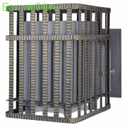 Печь для бани Гроза разработана как максимально экономичная модель для частного применения. Основной принцип работы печи сохранён – получение пара с теплоёмкой каменки прямого нагрева. Каменка является сводом топки, нагревается с нижней поверхности снабженной теплосъемными шипами для увеличения контакта с пламенем.