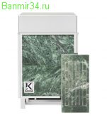 Электрическая каменка в облицовке из змеевика обладает повышенной прочностью и увеличивает полезные свойства банных процедур. Змеевик оказывает положительное влияние на мужскую потенцию, способствует повышению настроения и снижает риск вирусных заболеваний. Кроме того, камень нормализует давление и укрепляет иммунитет.