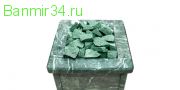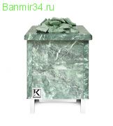 Электрическая каменка со всех сторон облицована натуральным змеевиком. Печь с подобным дизайном стильно смотрится в парильном помещении. Змеевик уже долгие годы используется для внутренней отделки бань. Его называют «аптекарским камнем» за его целебные качества. Минерал оказывает обеззараживающий эффект, положительно влияет на кости, оказывает успокаивающее воздействие и укрепляет иммунитет.