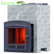 Печь Avangard ЗК 24 (П2) является законченным решением для установки в парную русской бани. 4-ёх сторонняя облицовка из природного камня талькохлорит выполнена из небольших брусков в виде кирпича толщиной 40мм плотно подогнанных к друг-другу. Облицовка собирается на металлические крепления, без использования цементных растворов. Облицовка останавливает жёсткое инфракрасное излучение и даёт мягкое тепло. Печь снабжена 2-мя паровыми «пушками» для возможности получения мелкодисперсного пара с разных уровней загрузки каменки. Дверца для с деревянной ручкой служит для залповой подачи воды для пара и снабжена поворотной заслонкой для регулировки уровня конвекции.