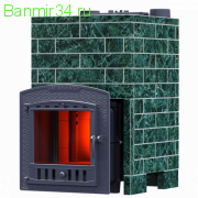 Печь Avangard ЗК 24(П2) является законченным решением для установки в парную русской бани. 4-ёх сторонняя облицовка из природного камня змеевик выполнена из небольших брусков в виде кирпича толщиной 40мм плотно подогнанных к друг-другу. Облицовка собирается на металлические крепления, без использования цементных растворов. Облицовка останавливает жёсткое инфракрасное излучение и даёт мягкое тепло. Печь снабжена 2-мя паровыми «пушками» для возможности получения мелкодисперсного пара с разных уровней загрузки каменки. Дверца для с деревянной ручкой служит для залповой подачи воды для пара и снабжена поворотной заслонкой для регулировки уровня конвекции.