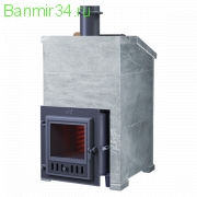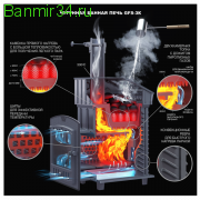 GFS-ЗК 45 - печь с усиленной каменкой большей массы, с единым углублением внутрь топки для дополнительной укладки чугунного заряда. Теплосъемные шипы, со стороны горения пламени, в разы увеличивают площадь соприкосновения огня с каменкой и ускоряют передачу тепла, а также способствуют лучшему дожигу смешивая потоки пламени и воздуха поступаемого из воздушника. Эти усовершенствования значительно повышают мощность парообразования печи и выдают большее количество пара при непрерывной подаче воды. Каменка печей GFS-ЗК является незаливаемой.