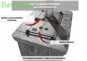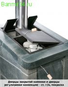 Зарекомендовавший себя более чем пятнадцатилетней работой топочный агрегат из чугуна, увеличенная емкость для камней с вертикальной загрузкой (конструкция каменки такова, что за счет 100%-го охвата пламенем ее поверхности, прогрев камней осуществляется до высоких температур), механизм регулировки конвекции, возможность использования парового инжектора для получения пара исключительных кондиций, массивная красивая облицовка из природного камня - все это новая «Сударушка С» (Семейная).