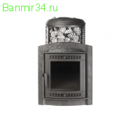 Печь банная «Атмосфера L» с комбинированной облицовкой окаменевшее дерево наборный