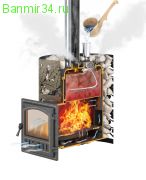 В комплектацию входит: Сборная печь со съемным топочным тоннелем и чугунной дверкой. Цилиндрическая закрытая каменка из нержавеющей стали марки AISI 430, рассчитанная на загрузку 35-40 кг камней мелкой фракции. Система капельной подачи воды на камни закрытой каменки. Канал для подачи воздуха в область вторичного дожига. Массивный чугунный колосник. Зольный ящик, выполненный из прочной стали, позволяющий оперативно проводить уборку печи. Стальной конвекционный кожух для укладывания камней. Термостойкий герметик для сборки печи. Инструкция по монтажу и эксплуатации.