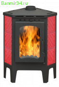 Печь-камин БАВАРИЯ УГЛОВАЯ изразцовая "Решетка" красная с металлической крышкой