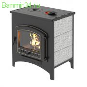 Верхнюю горизонтальную поверхность можно использовать для приготовления пищи. Печь укомплектована чугунным колосником и чугунной негерметичной дверцей Везувий ДТ-4. Печь облицована керамической плиткой для лучшего распределения тепла.