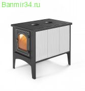 Верхнюю горизонтальную поверхность можно использовать для приготовления пищи. Печь укомплектована чугунным колосником и чугунной негерметичной дверцей Везувий ДТ-4. Печь облицована керамической плиткой для лучшего распределения тепла.