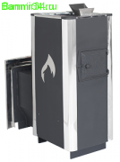 Банная печь конвекционного типа, объединившая в себе две каменки - открытую и закрытую. Открытая каменка, как у большинства классических печей, прогревается от газоходных каналов и нагревает камень до температуры 250-300 ⁰С.
