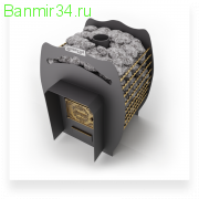 — Топка и каменка данной модели выполнены из жаростойкой стали. Топку окружает кованная сетка, которая образует каменку. В ней может поместиться от 100 до 200 кг камней.