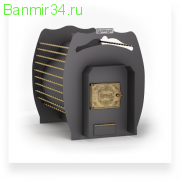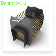 — Топка и каменка данной модели выполнены из жаростойкой стали. Топку окружает кованная сетка, которая образует каменку. В ней может поместиться от 100 до 200 кг камней.