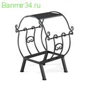 Подставка изготовлена из стального прутка с коваными элементами. Нижний контур и ножки сделаны из квадратного профиля толщиной 25 мм, а в верхней части подставки сделана решётчатая накладка, предназначенная для сушки и обеспечивающая безопасное использование печи.