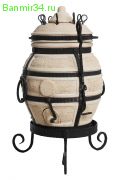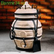 Тандыр сделан из шамотной глины и имеет толстые 5-сантиметровые стенки. За счет этого даже от маленькой вязанки дров жара хватит для приготовления большого количества еды. Другие достоинства модели: красивый дизайн.