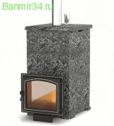 Комплект с чугунной банной печью «Легенда Русский пар 24 (240) Next» в облицовке из натурального камня.