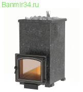 Данную модель печи отличает от аналогов то, что закрытая каменка расположена внутри топки. Это позволяет максимально быстро и хорошо прогревать камни, которые расположены внутри каменки. На камни через специальную трубку с отверстиями поддается вода, которая моментально испаряется, превращаясь в мелкодисперсный пар.
