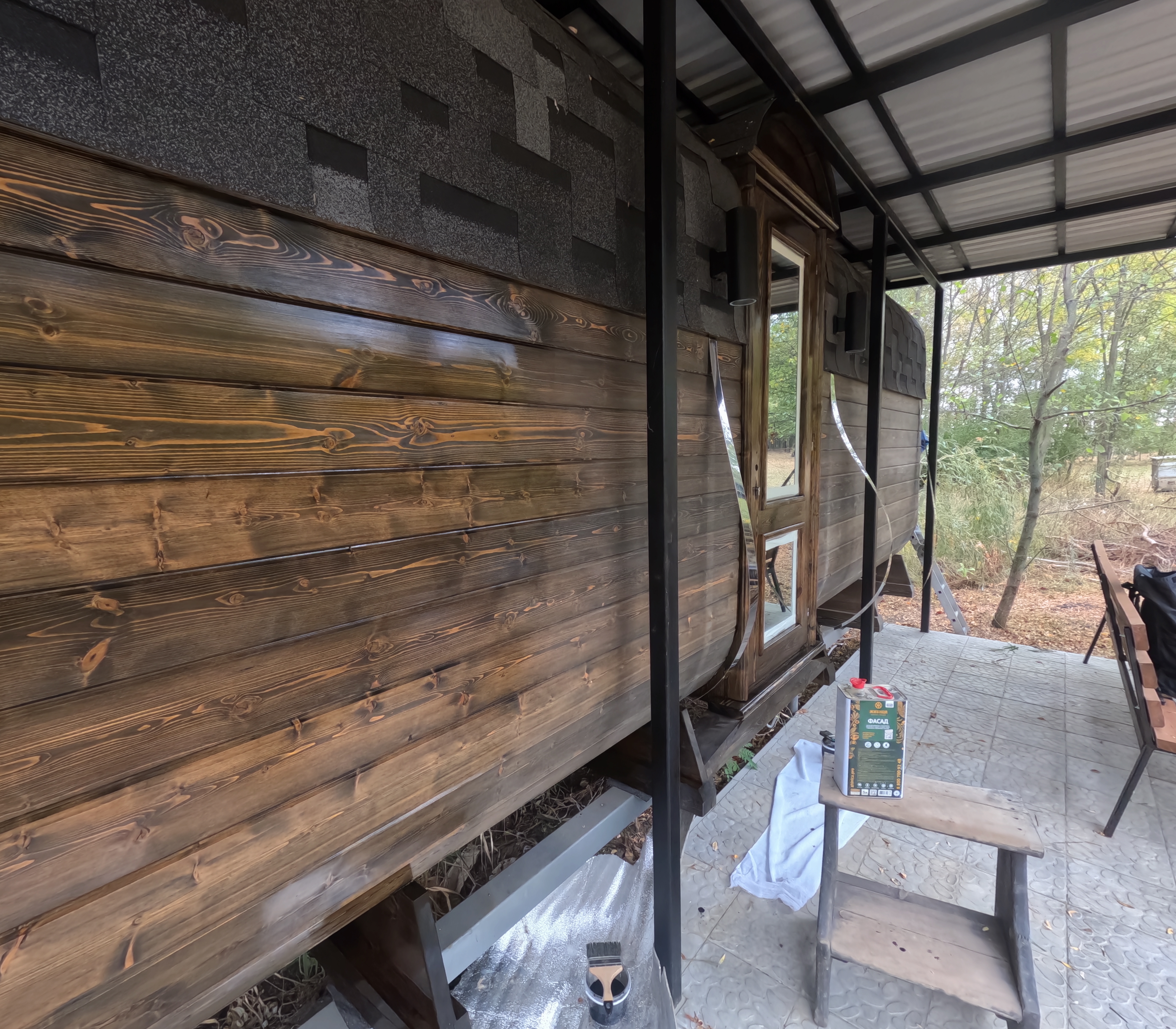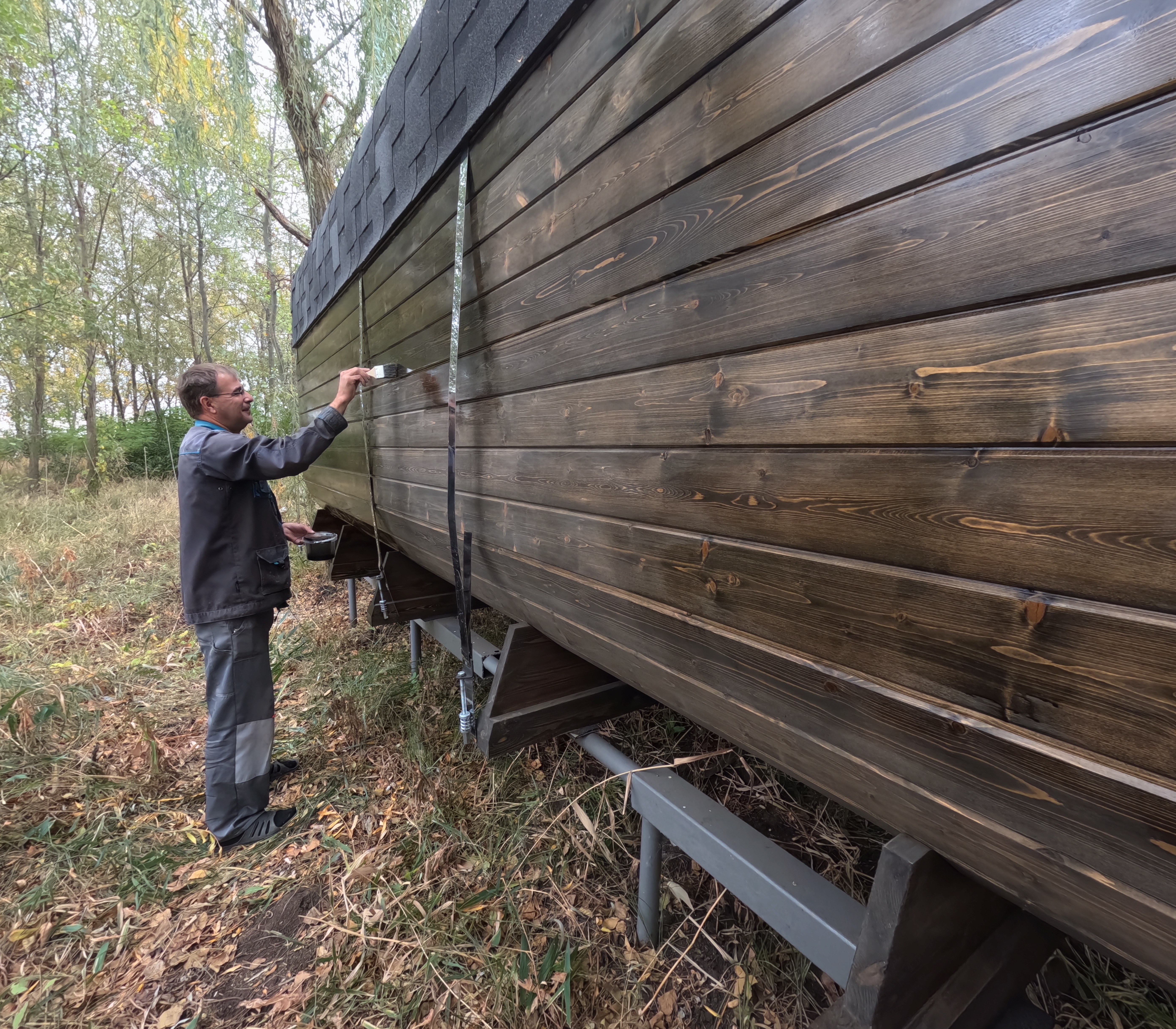 Дерево обрабатывают маслом, чтобы защитить древесину от внешних воздействий и сохранить её эстетичный вид.
